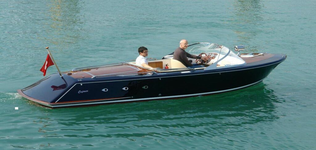 The Caprice Classic is a beautifully built electric launch designed and handcrafted in the UK. With graceful lines, solid GRP construction and silent electric propulsion, she offers a refined cruising experience ideal for lakes, rivers and inland waterways. Her varnished mahogany deck and polished stainless detailing give a subtle nod to classic Italian runabout styling, while retaining a distinctly British character.