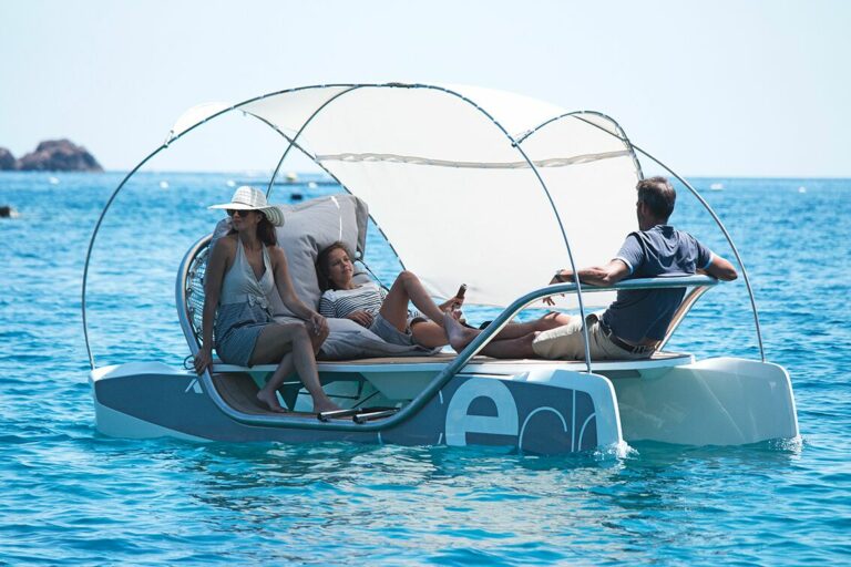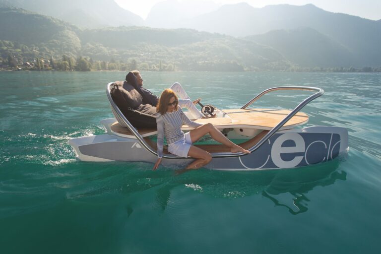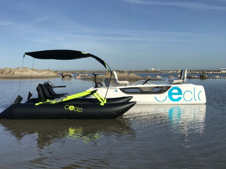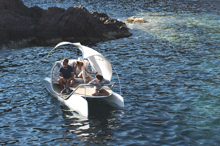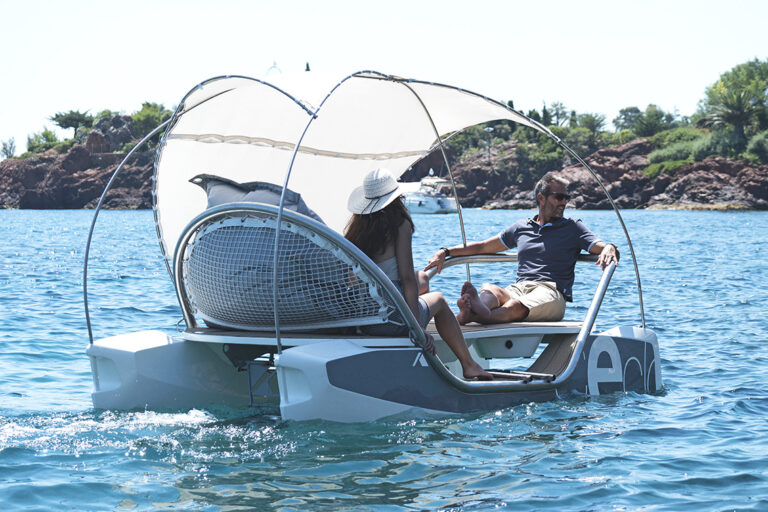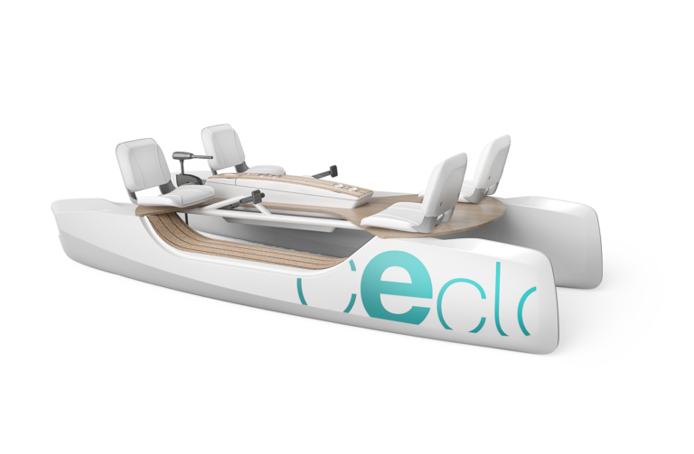 The Ceclo electric pedalo is an amazing new concept from a small and innovative company based in the south of France. The options are many according to numbers and level of luxury. This pedal assisted catamaran offers style and stability. It’s easy to control so perfect for private or commercial use. Elegance, comfort and performance with a sporty aspect offered by the pedal assisted steering mechanism.