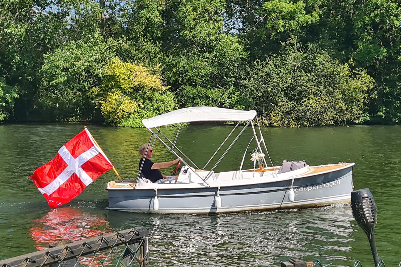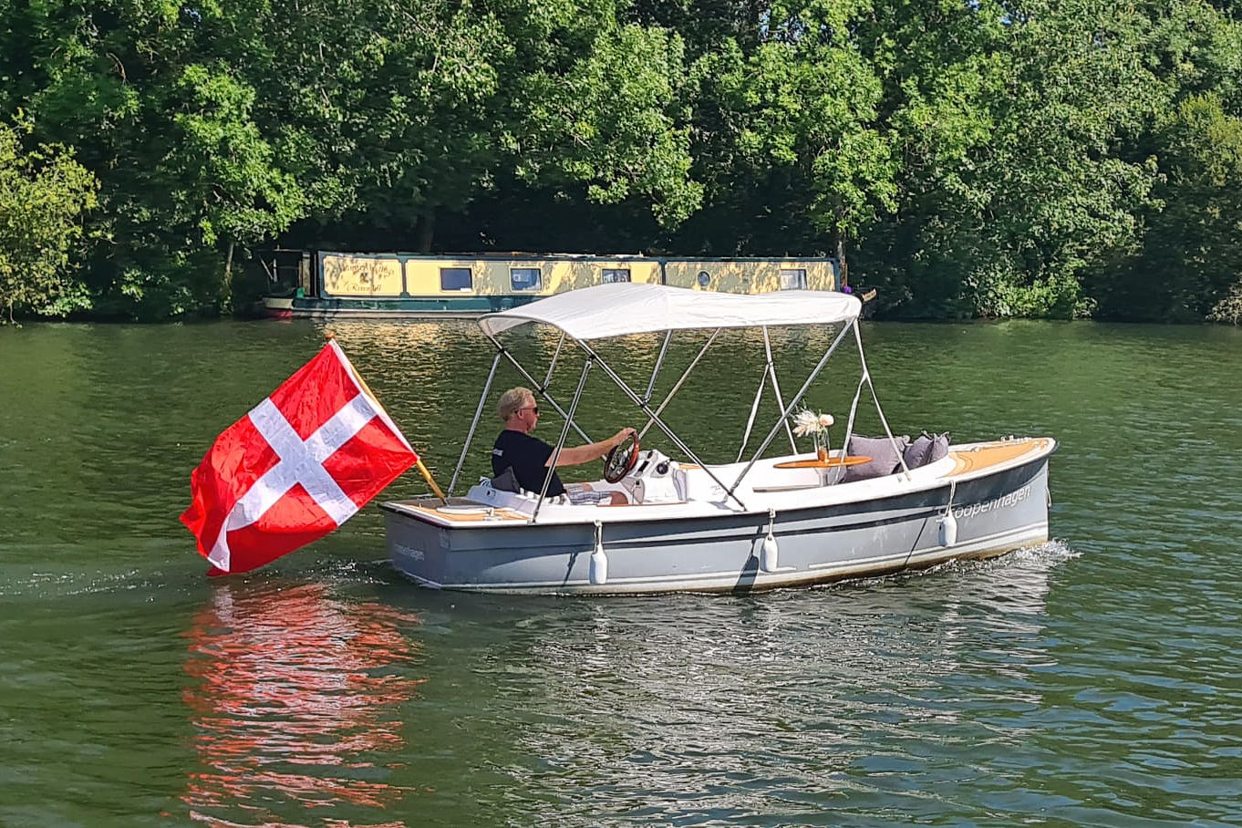 Scoopenhagen is a beautifully styled Ruban Bleu Scoop+, combining modern design with a sense of luxury. With her striking grey hull, matching bimini and cushions, and faux teak decking, she presents a smart, upmarket look that turns heads on the river.