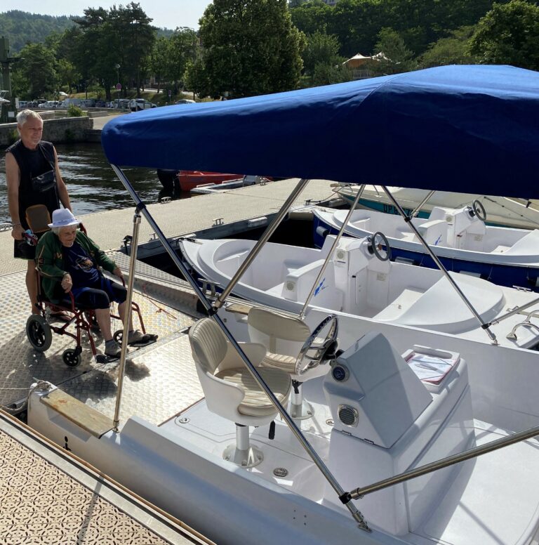 Thanks to the collapsable boarding transom a person in a weelchair can get on board. The rear position of the driver and the height of the freeboard guarantee a 180° visibility for the safety of the passengers.