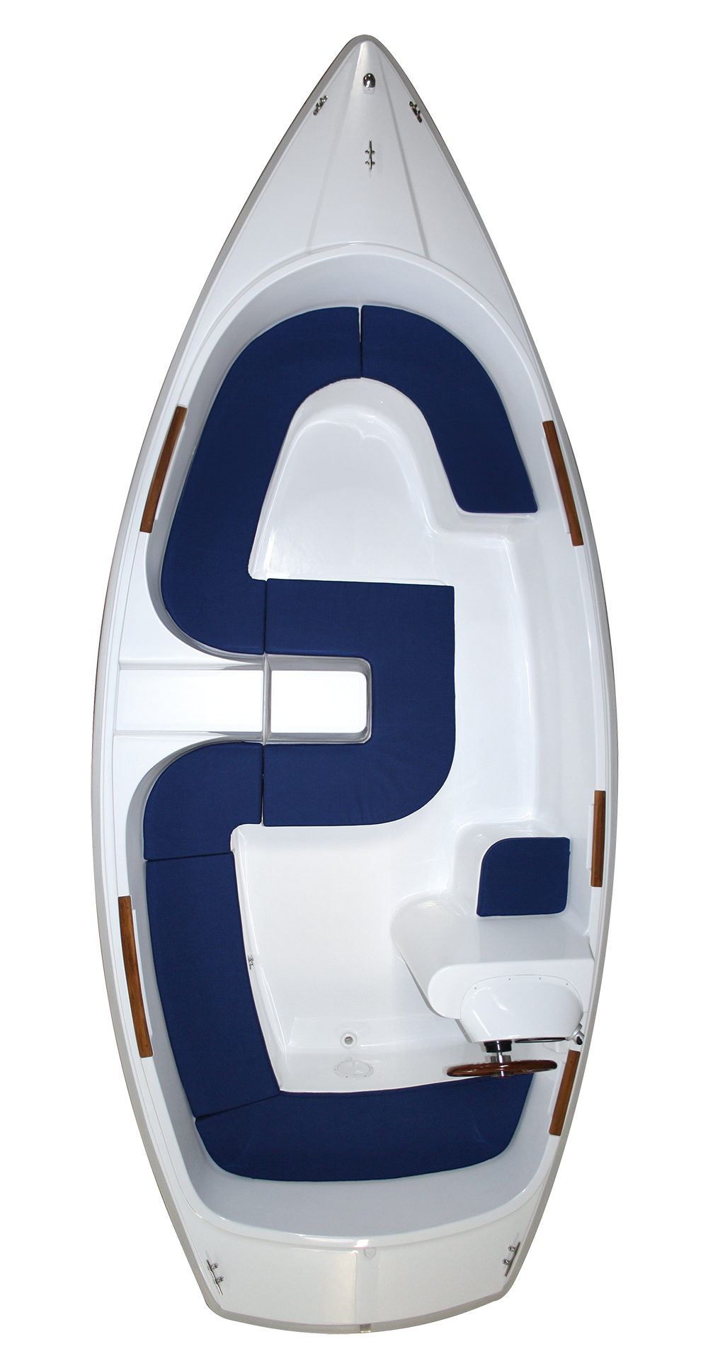 Batteries are located beneath the midships seating area where the charging cable is also concealed when the boat is in operation.