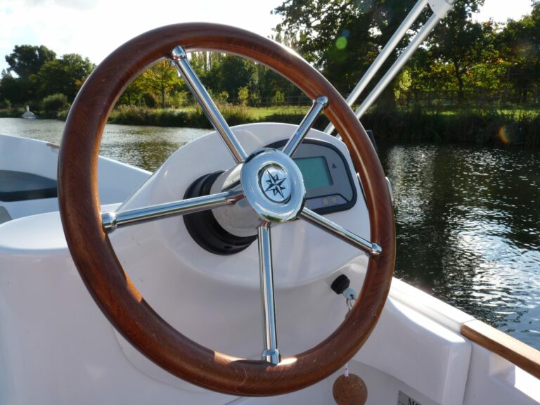 A touch of wood trim and a smart mahogany wheel adds a touch of the traditional to this top of the range electric launch and make this a very attractive upmarket rental option.