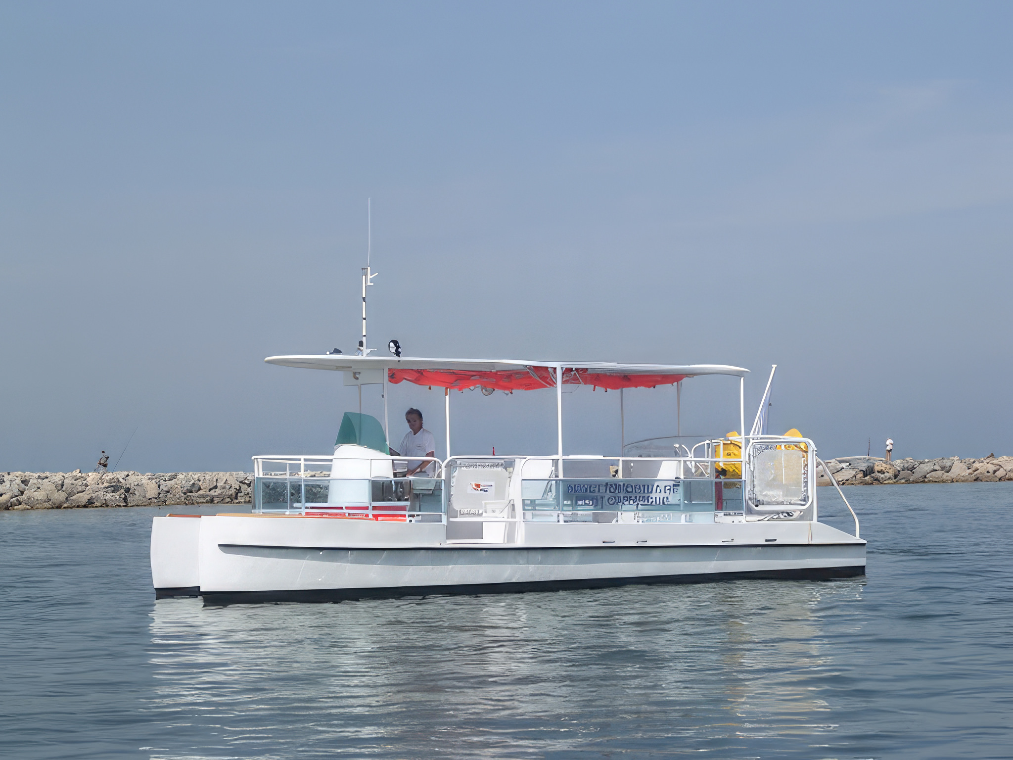 The NAVETTE electric catamaran embodies the future of transport with its combination of style and convenience, and is perfect for transporting passengers, with a capacity of 15 to 30 individuals.